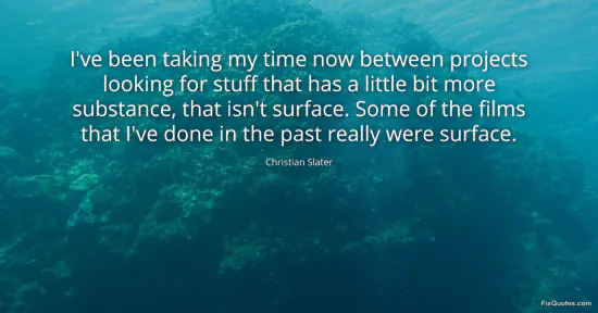 Slater, Christian. "I've been taking my time now between projects looking for stuff that has a little bit more substance, that isn't surface. Some of the films that I've done in the past really were surface." FixQuotes. January 17, 2026. https://fixquotes.com/quotes/ive-been-taking-my-time-now-between-projects-45243/.