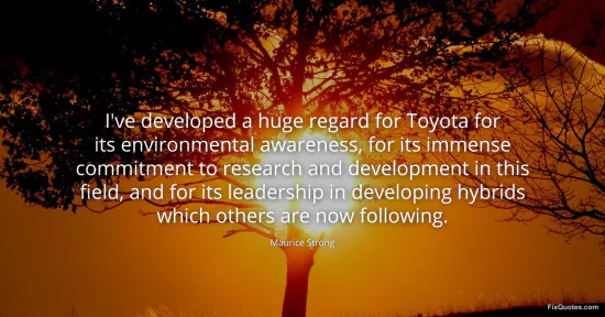 Strong, Maurice. "I've developed a huge regard for Toyota for its environmental awareness, for its immense commitment to research and development in this field, and for its leadership in developing hybrids which others are now following." FixQuotes. January 15, 2026. https://fixquotes.com/quotes/ive-developed-a-huge-regard-for-toyota-for-its-152440/.