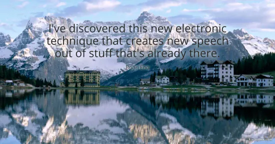 Eno, Brian. "I've discovered this new electronic technique that creates new speech out of stuff that's already there." FixQuotes. January 15, 2026. https://fixquotes.com/quotes/ive-discovered-this-new-electronic-technique-that-48208/.