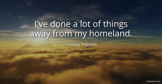 Segundo, Compay. "I've done a lot of things away from my homeland." FixQuotes. January 15, 2026. https://fixquotes.com/quotes/ive-done-a-lot-of-things-away-from-my-homeland-145676/.