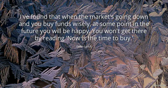 Lynch, Peter. "I've found that when the market's going down and you buy funds wisely, at some point in the future you will be happy. You won't get there by reading 'Now is the time to buy.'." FixQuotes. January 16, 2026. https://fixquotes.com/quotes/ive-found-that-when-the-markets-going-down-and-101167/.