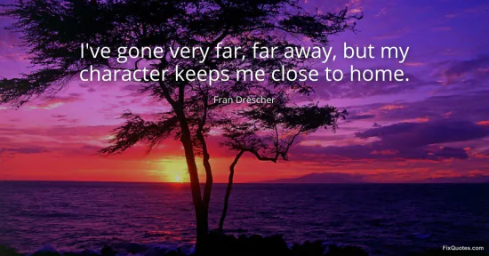Drescher, Fran. "I've gone very far, far away, but my character keeps me close to home." FixQuotes. January 17, 2026. https://fixquotes.com/quotes/ive-gone-very-far-far-away-but-my-character-keeps-51677/.