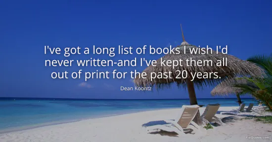 Koontz, Dean. "I've got a long list of books I wish I'd never written-and I've kept them all out of print for the past 20 years." FixQuotes. January 15, 2026. https://fixquotes.com/quotes/ive-got-a-long-list-of-books-i-wish-id-never-140506/.
