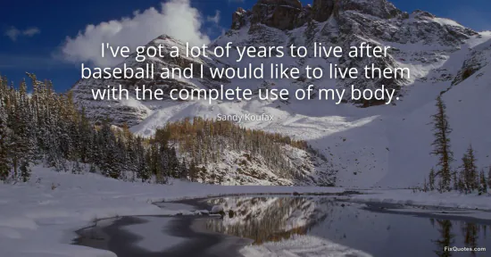 Koufax, Sandy. (2026, January 15). I've got a lot of years to live after baseball and I would like to live them with the complete use of my body. FixQuotes. https://fixquotes.com/quotes/ive-got-a-lot-of-years-to-live-after-baseball-and-147977/