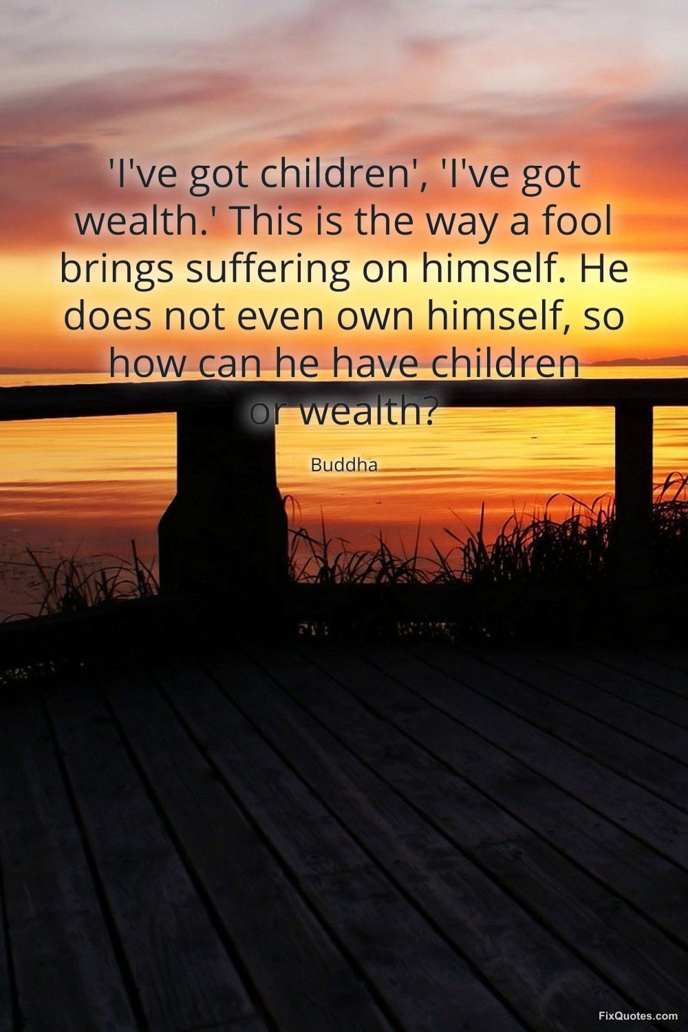Buddha. "'I've got children', 'I've got wealth.' This is the way a fool brings suffering on himself. He does not even own himself, so how can he have children or wealth?" FixQuotes. March 10, 2026. https://fixquotes.com/quotes/ive-got-children-ive-got-wealth-this-is-the-way-a-186000/.