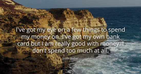 Bieber, Justin. (2026, January 16). I've got my eye on a few things to spend my money on. I've got my own bank card but I am really good with money. I don't spend too much at all. FixQuotes. https://fixquotes.com/quotes/ive-got-my-eye-on-a-few-things-to-spend-my-money-133617/
