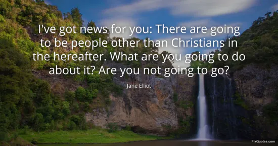 Elliot, Jane. (2026, January 16). I've got news for you: There are going to be people other than Christians in the hereafter. What are you going to do about it? Are you not going to go? FixQuotes. https://fixquotes.com/quotes/ive-got-news-for-you-there-are-going-to-be-people-95455/