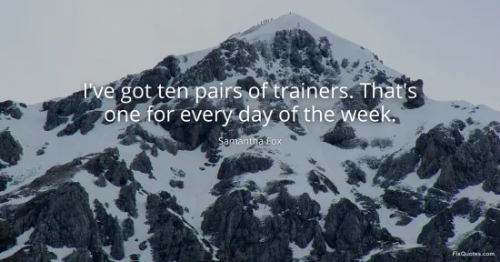 Fox, Samantha. (2026, February 7). I've got ten pairs of trainers. That's one for every day of the week. FixQuotes. https://fixquotes.com/quotes/ive-got-ten-pairs-of-trainers-thats-one-for-every-133506/