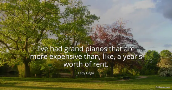 Gaga, Lady. "I've had grand pianos that are more expensive than, like, a year's worth of rent." FixQuotes. January 18, 2026. https://fixquotes.com/quotes/ive-had-grand-pianos-that-are-more-expensive-than-20127/.