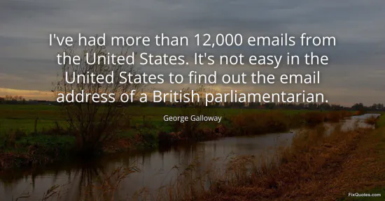Galloway, George. (2026, January 15). I've had more than 12,000 emails from the United States. It's not easy in the United States to find out the email address of a British parliamentarian. FixQuotes. https://fixquotes.com/quotes/ive-had-more-than-12000-emails-from-the-united-164707/