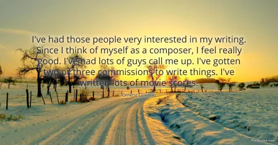 Coleman, Ornette. (2026, January 16). I've had those people very interested in my writing. Since I think of myself as a composer, I feel really good. I've had lots of guys call me up. I've gotten two or three commissions to write things. I've written lots of movie scores. FixQuotes. https://fixquotes.com/quotes/ive-had-those-people-very-interested-in-my-101489/