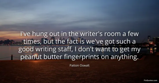 Oswalt, Patton. "I've hung out in the writer's room a few times, but the fact is we've got such a good writing staff, I don't want to get my peanut butter fingerprints on anything." FixQuotes. January 16, 2026. https://fixquotes.com/quotes/ive-hung-out-in-the-writers-room-a-few-times-but-101290/.