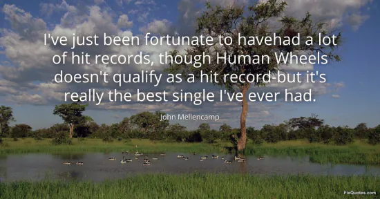 Mellencamp, John. "I've just been fortunate to havehad a lot of hit records, though Human Wheels doesn't qualify as a hit record-but it's really the best single I've ever had." FixQuotes. January 17, 2026. https://fixquotes.com/quotes/ive-just-been-fortunate-to-havehad-a-lot-of-hit-57522/.