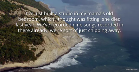Stills, Stephen. (2026, January 16). I've just built a studio in my mama's old bedroom, which I thought was fitting; she died last year. We've recorded nine songs recorded in there already; we're sort of just chipping away. FixQuotes. https://fixquotes.com/quotes/ive-just-built-a-studio-in-my-mamas-old-bedroom-122248/