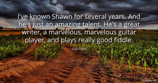 Clark, Guy. "I've known Shawn for several years. And he's just an amazing talent. He's a great writer, a marvelous, marvelous guitar player, and plays really good fiddle." FixQuotes. January 16, 2026. https://fixquotes.com/quotes/ive-known-shawn-for-several-years-and-hes-just-an-120730/.