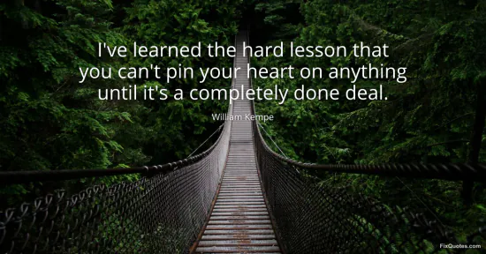 Kempe, William. "I've learned the hard lesson that you can't pin your heart on anything until it's a completely done deal." FixQuotes. January 15, 2026. https://fixquotes.com/quotes/ive-learned-the-hard-lesson-that-you-cant-pin-116643/.