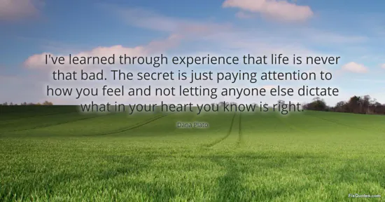 Plato, Dana. "I've learned through experience that life is never that bad. The secret is just paying attention to how you feel and not letting anyone else dictate what in your heart you know is right." FixQuotes. January 16, 2026. https://fixquotes.com/quotes/ive-learned-through-experience-that-life-is-never-121186/.