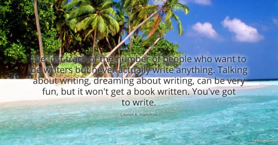 Hamilton, Laurell K. (2026, January 15). I've lost track of the number of people who want to be writers but never actually write anything. Talking about writing, dreaming about writing, can be very fun, but it won't get a book written. You've got to write. FixQuotes. https://fixquotes.com/quotes/ive-lost-track-of-the-number-of-people-who-want-164139/
