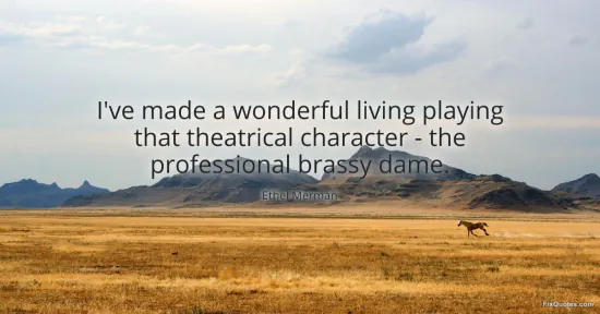Merman, Ethel. "I've made a wonderful living playing that theatrical character - the professional brassy dame." FixQuotes. January 15, 2026. https://fixquotes.com/quotes/ive-made-a-wonderful-living-playing-that-141197/.