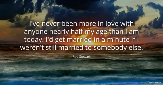 Stewart, Rod. "I've never been more in love with anyone nearly half my age than I am today. I'd get married in a minute if I weren't still married to somebody else." FixQuotes. January 15, 2026. https://fixquotes.com/quotes/ive-never-been-more-in-love-with-anyone-nearly-159378/.