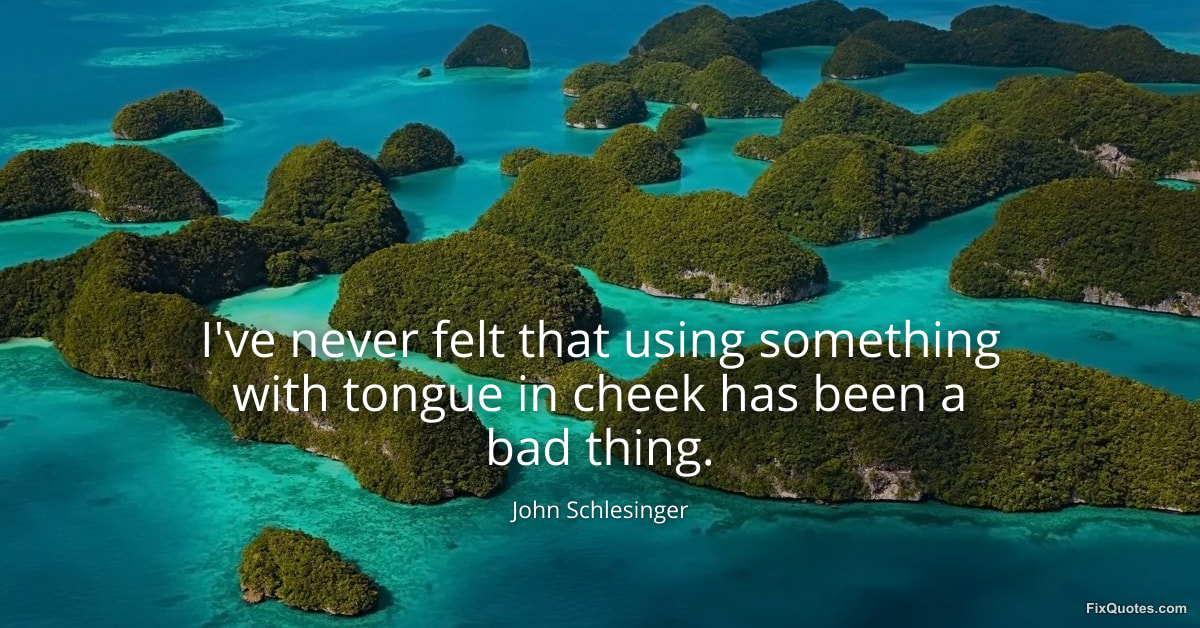 Schlesinger, John. (2026, January 15). I've never felt that using something with tongue in cheek has been a bad thing. FixQuotes. https://fixquotes.com/quotes/ive-never-felt-that-using-something-with-tongue-149692/