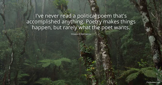 Nemerov, Howard. "I've never read a political poem that's accomplished anything. Poetry makes things happen, but rarely what the poet wants." FixQuotes. January 17, 2026. https://fixquotes.com/quotes/ive-never-read-a-political-poem-thats-61875/.