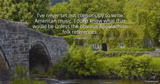 Floyd, Carlisle. (2026, January 15). I've never set out consciously to write American music. I don't know what that would be unless the obvious Appalachian folk references. FixQuotes. https://fixquotes.com/quotes/ive-never-set-out-consciously-to-write-american-44519/