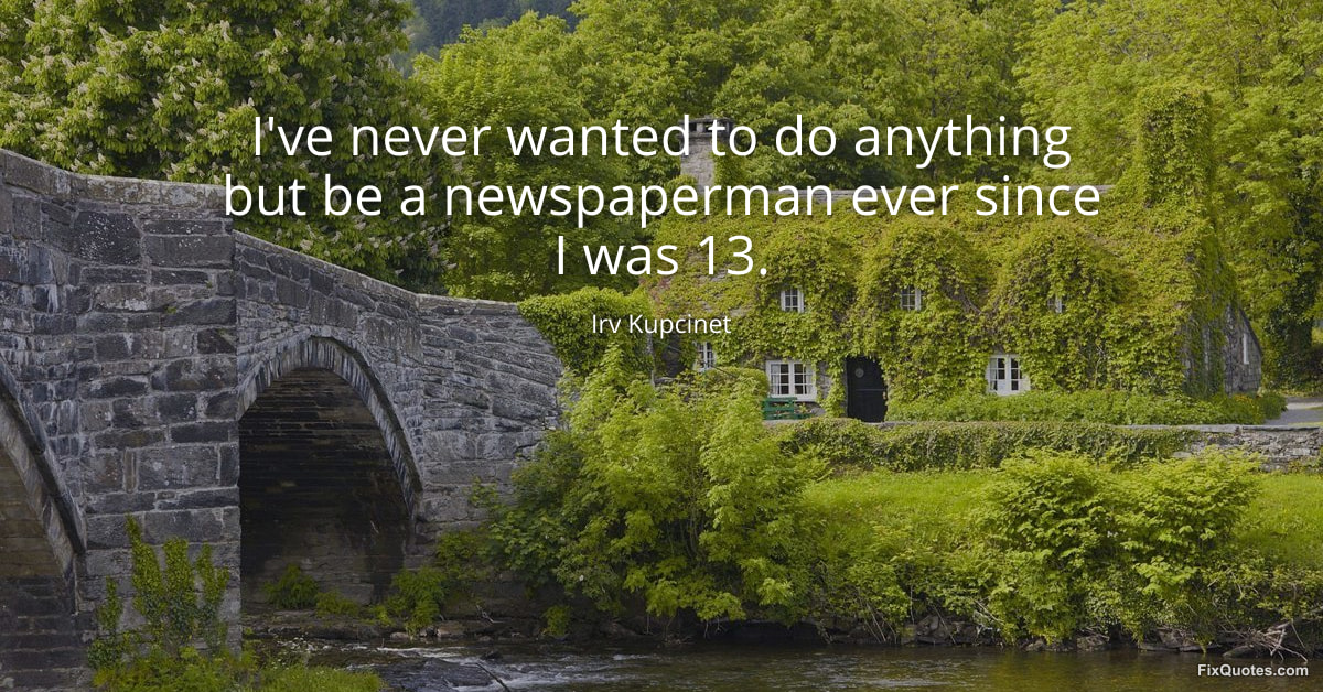 Kupcinet, Irv. "I've never wanted to do anything but be a newspaperman ever since I was 13." FixQuotes. January 15, 2026. https://fixquotes.com/quotes/ive-never-wanted-to-do-anything-but-be-a-173570/.