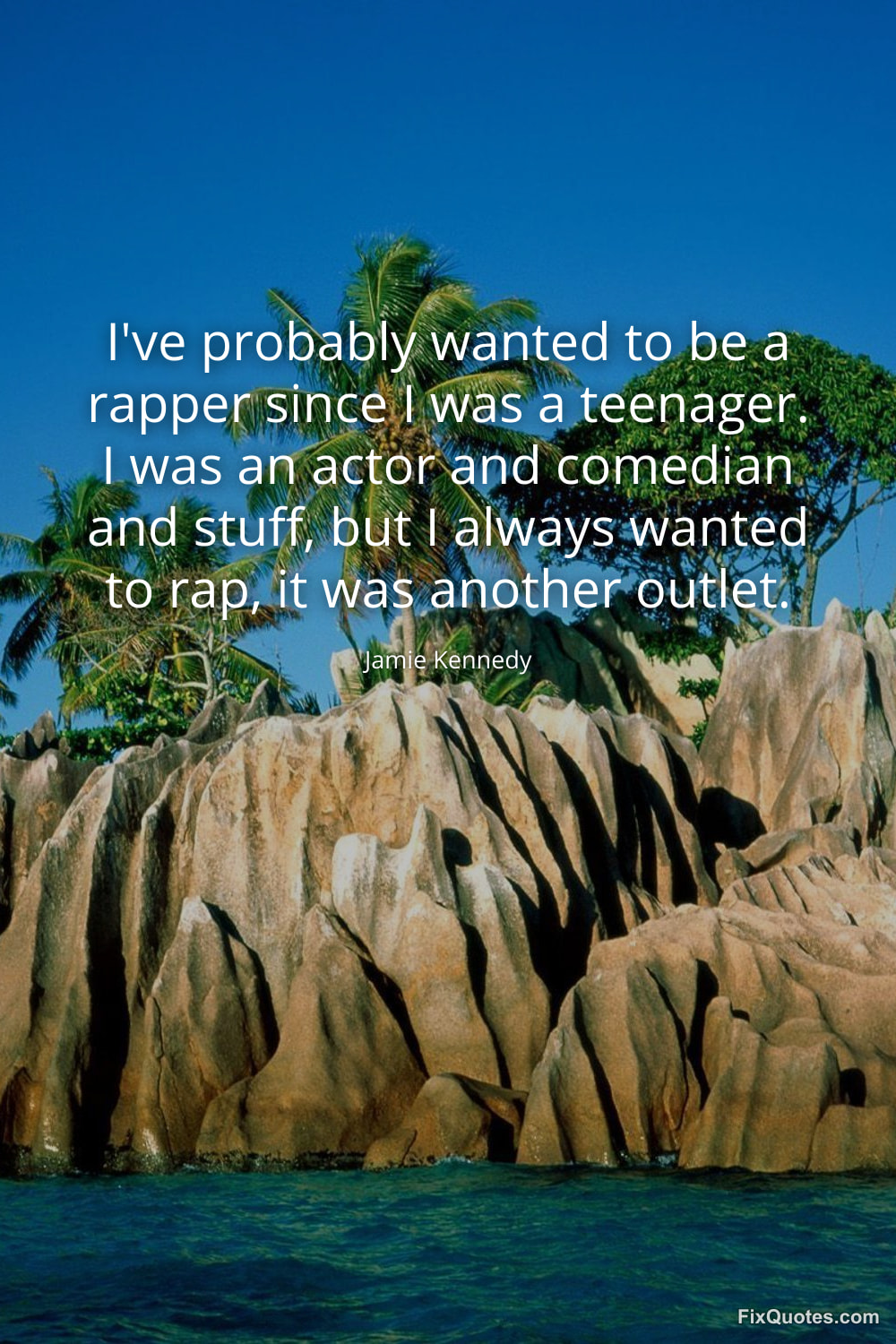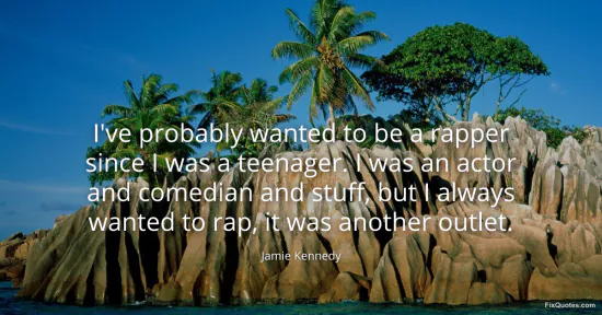 Kennedy, Jamie. "I've probably wanted to be a rapper since I was a teenager. I was an actor and comedian and stuff, but I always wanted to rap, it was another outlet." FixQuotes. January 15, 2026. https://fixquotes.com/quotes/ive-probably-wanted-to-be-a-rapper-since-i-was-a-173168/.