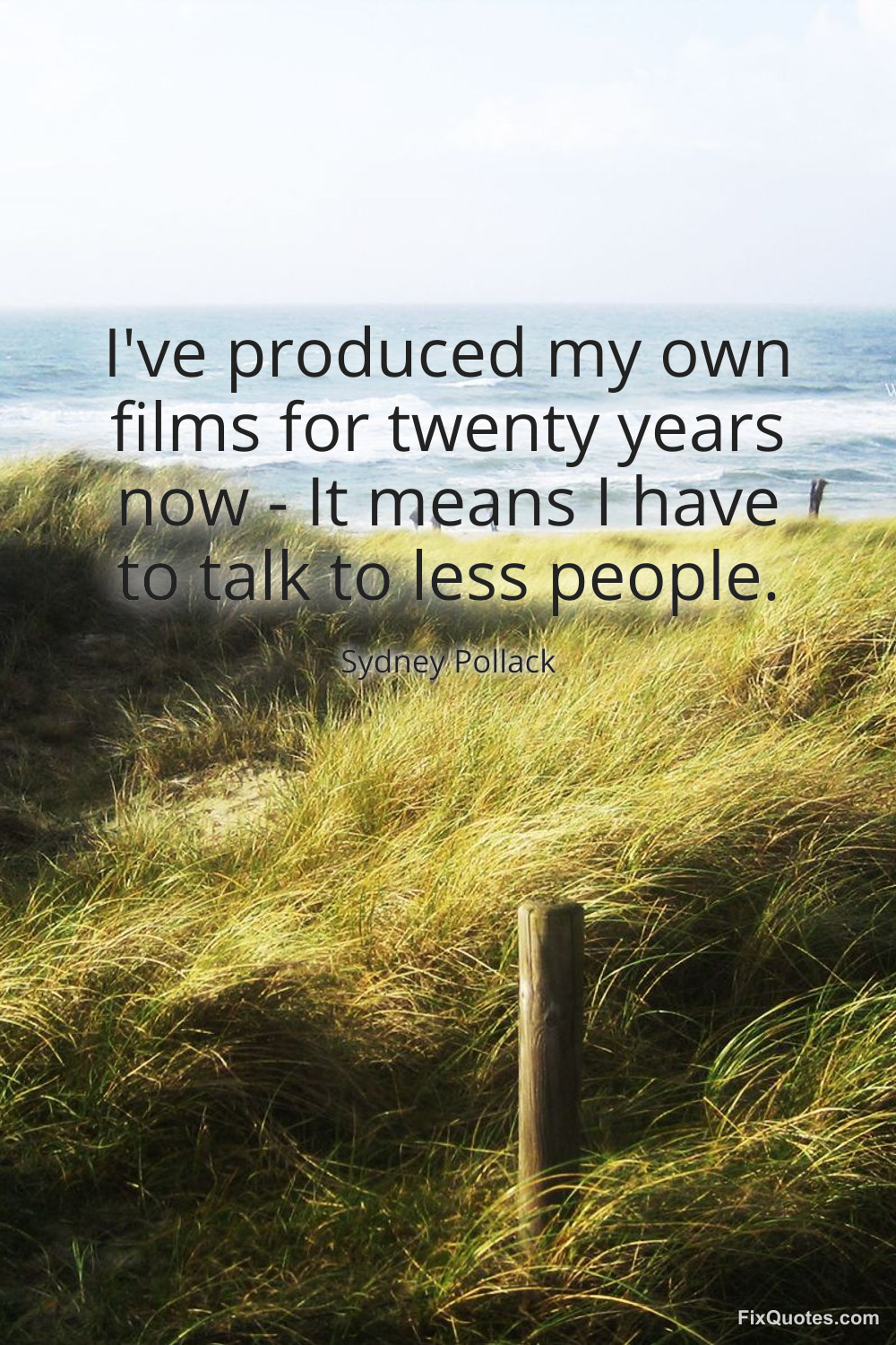 Pollack, Sydney. "I've produced my own films for twenty years now - It means I have to talk to less people." FixQuotes. February 17, 2026. https://fixquotes.com/quotes/ive-produced-my-own-films-for-twenty-years-now-164583/.