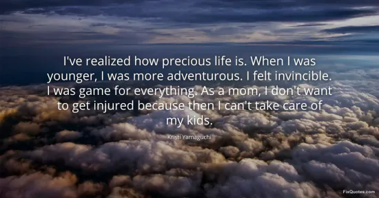 "I've realized how precious life is. When I was younger, I was more adventurous. I felt invincible. I was game for everything. As a mom, I don't want to get injured because then I can't take care of my kids"