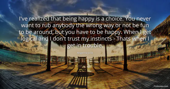 Jolie, Angelina. (2026, January 17). I've realized that being happy is a choice. You never want to rub anybody the wrong way or not be fun to be around, but you have to be happy. When I get logical and I don't trust my instincts - Thats when I get in trouble. FixQuotes. https://fixquotes.com/quotes/ive-realized-that-being-happy-is-a-choice-you-28645/