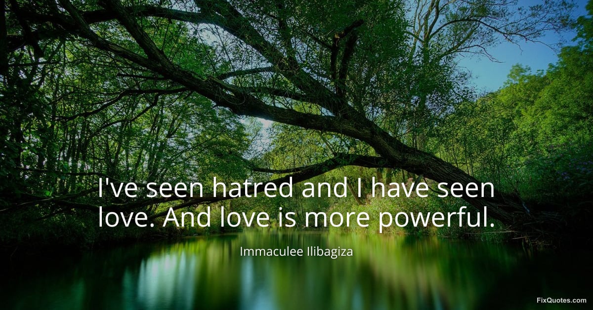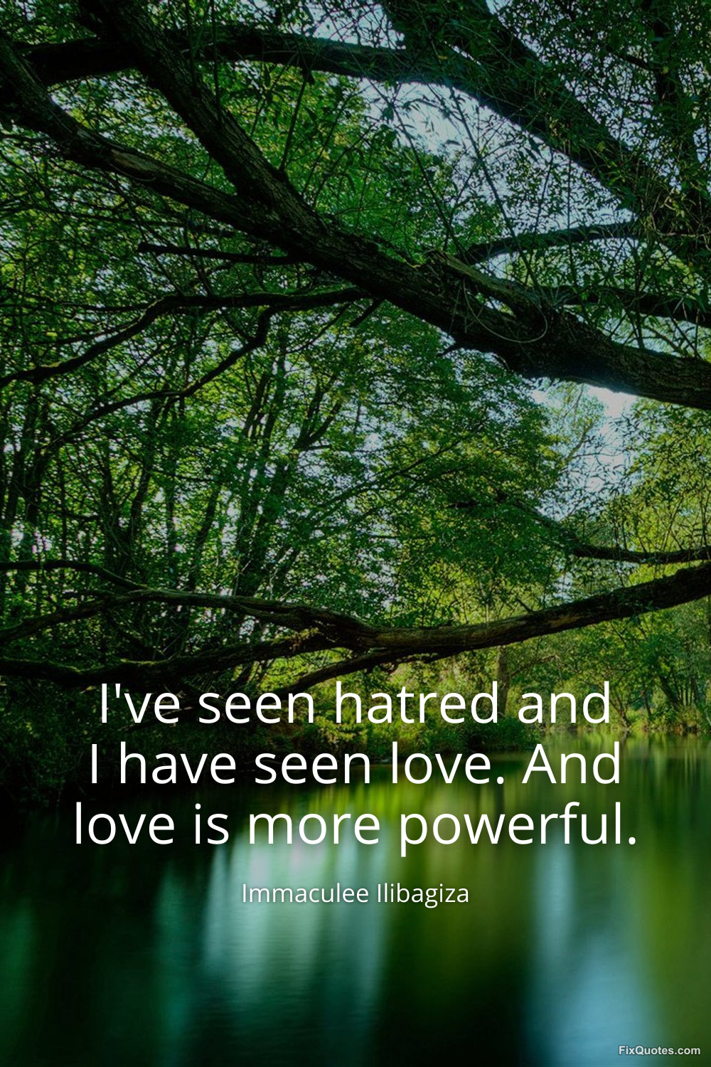 Ilibagiza, Immaculee. (2026, March 8). I've seen hatred and I have seen love. And love is more powerful. FixQuotes. https://fixquotes.com/quotes/ive-seen-hatred-and-i-have-seen-love-and-love-is-185731/