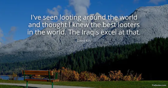 Kay, David. (2026, January 17). I've seen looting around the world and thought I knew the best looters in the world. The Iraqis excel at that. FixQuotes. https://fixquotes.com/quotes/ive-seen-looting-around-the-world-and-thought-i-58891/