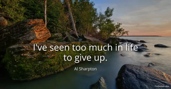 Sharpton, Al. (2026, January 17). I've seen too much in life to give up. FixQuotes. https://fixquotes.com/quotes/ive-seen-too-much-in-life-to-give-up-37255/