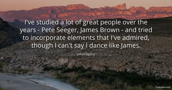 Fogerty, John. "I've studied a lot of great people over the years - Pete Seeger, James Brown - and tried to incorporate elements that I've admired, though I can't say I dance like James." FixQuotes. January 17, 2026. https://fixquotes.com/quotes/ive-studied-a-lot-of-great-people-over-the-years-80317/.