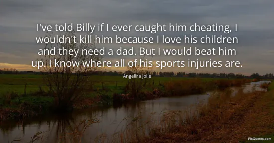 Jolie, Angelina. (2026, January 17). I've told Billy if I ever caught him cheating, I wouldn't kill him because I love his children and they need a dad. But I would beat him up. I know where all of his sports injuries are. FixQuotes. https://fixquotes.com/quotes/ive-told-billy-if-i-ever-caught-him-cheating-i-28646/