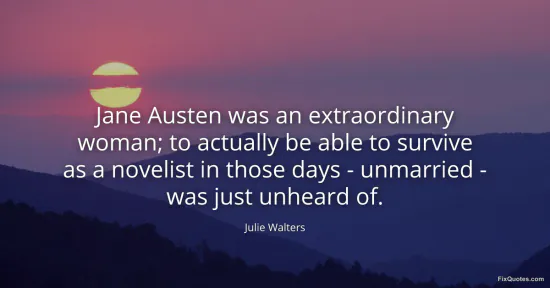 Walters, Julie. "Jane Austen was an extraordinary woman; to actually be able to survive as a novelist in those days - unmarried - was just unheard of." FixQuotes. January 16, 2026. https://fixquotes.com/quotes/jane-austen-was-an-extraordinary-woman-to-103848/.