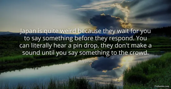 Jones, Kelly. (2026, January 17). Japan is quite weird because they wait for you to say something before they respond. You can literally hear a pin drop, they don't make a sound until you say something to the crowd. FixQuotes. https://fixquotes.com/quotes/japan-is-quite-weird-because-they-wait-for-you-to-69774/