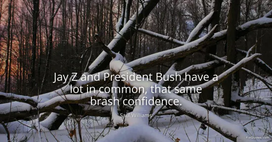 Williams, Saul. "Jay Z and President Bush have a lot in common, that same brash confidence." FixQuotes. January 17, 2026. https://fixquotes.com/quotes/jay-z-and-president-bush-have-a-lot-in-common-64878/.