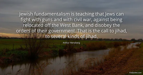 Hertzberg, Arthur. (2026, January 16). Jewish fundamentalism is teaching that Jews can fight with guns and with civil war, against being relocated off the West Bank, and disobey the orders of their government. That is the call to jihad, to several kinds of jihad. FixQuotes. https://fixquotes.com/quotes/jewish-fundamentalism-is-teaching-that-jews-can-139026/