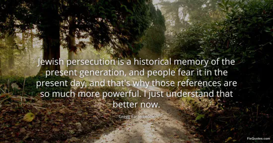 Easterbrook, Gregg. (2026, February 18). Jewish persecution is a historical memory of the present generation, and people fear it in the present day, and that's why those references are so much more powerful. I just understand that better now. FixQuotes. https://fixquotes.com/quotes/jewish-persecution-is-a-historical-memory-of-the-67045/