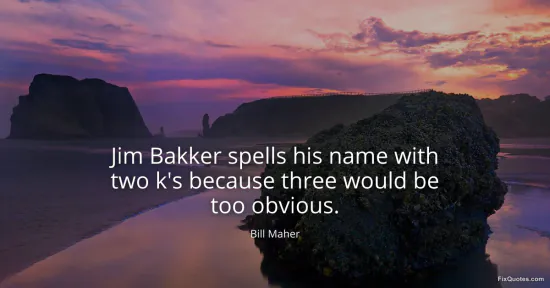 Maher, Bill. "Jim Bakker spells his name with two k's because three would be too obvious." FixQuotes. January 17, 2026. https://fixquotes.com/quotes/jim-bakker-spells-his-name-with-two-ks-because-30141/.