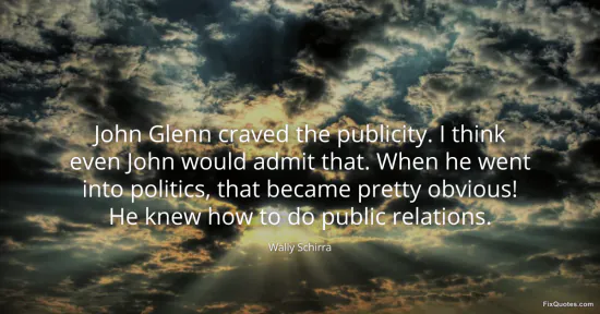 Schirra, Wally. "John Glenn craved the publicity. I think even John would admit that. When he went into politics, that became pretty obvious! He knew how to do public relations." FixQuotes. January 18, 2026. https://fixquotes.com/quotes/john-glenn-craved-the-publicity-i-think-even-john-9206/.