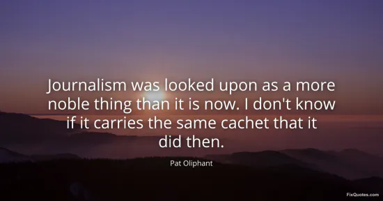 Oliphant, Pat. "Journalism was looked upon as a more noble thing than it is now. I don't know if it carries the same cachet that it did then." FixQuotes. January 15, 2026. https://fixquotes.com/quotes/journalism-was-looked-upon-as-a-more-noble-thing-152890/.