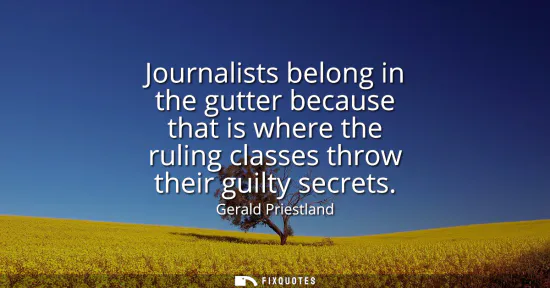 | Source | Gerald Priestland — quotation: "Journalists belong in the gutter because that is where the ruling classes throw their guilty secrets." Cited on Wikiquote (Gerald Priestland page). |