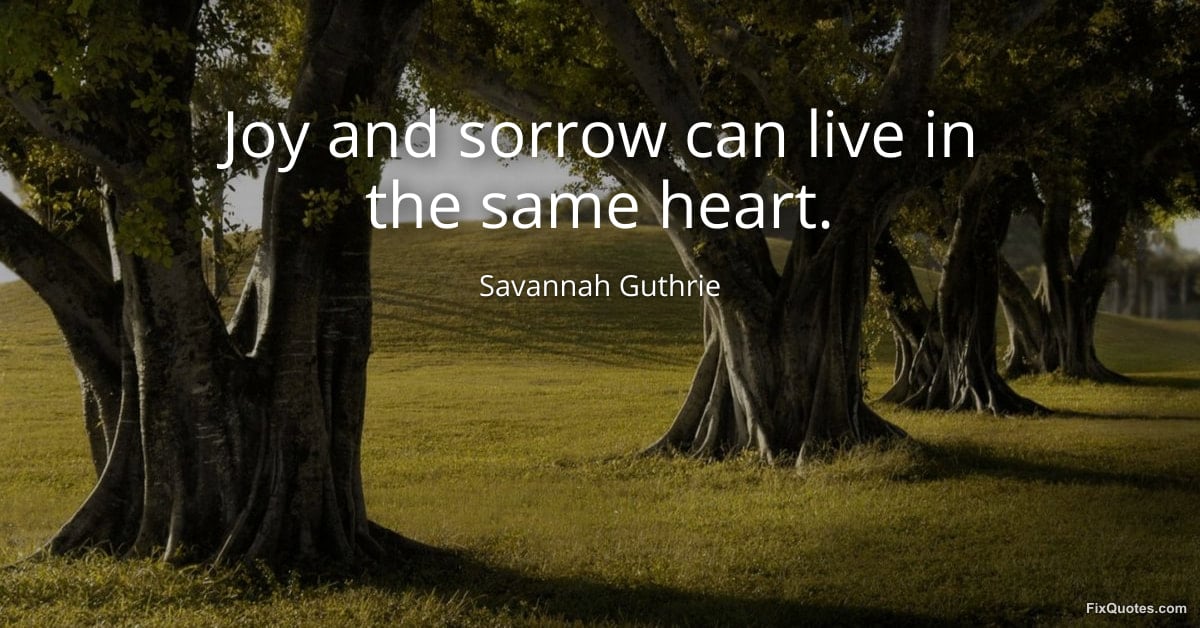 Guthrie, Savannah. (2026, February 11). Joy and sorrow can live in the same heart. FixQuotes. https://fixquotes.com/quotes/joy-and-sorrow-can-live-in-the-same-heart-185268/