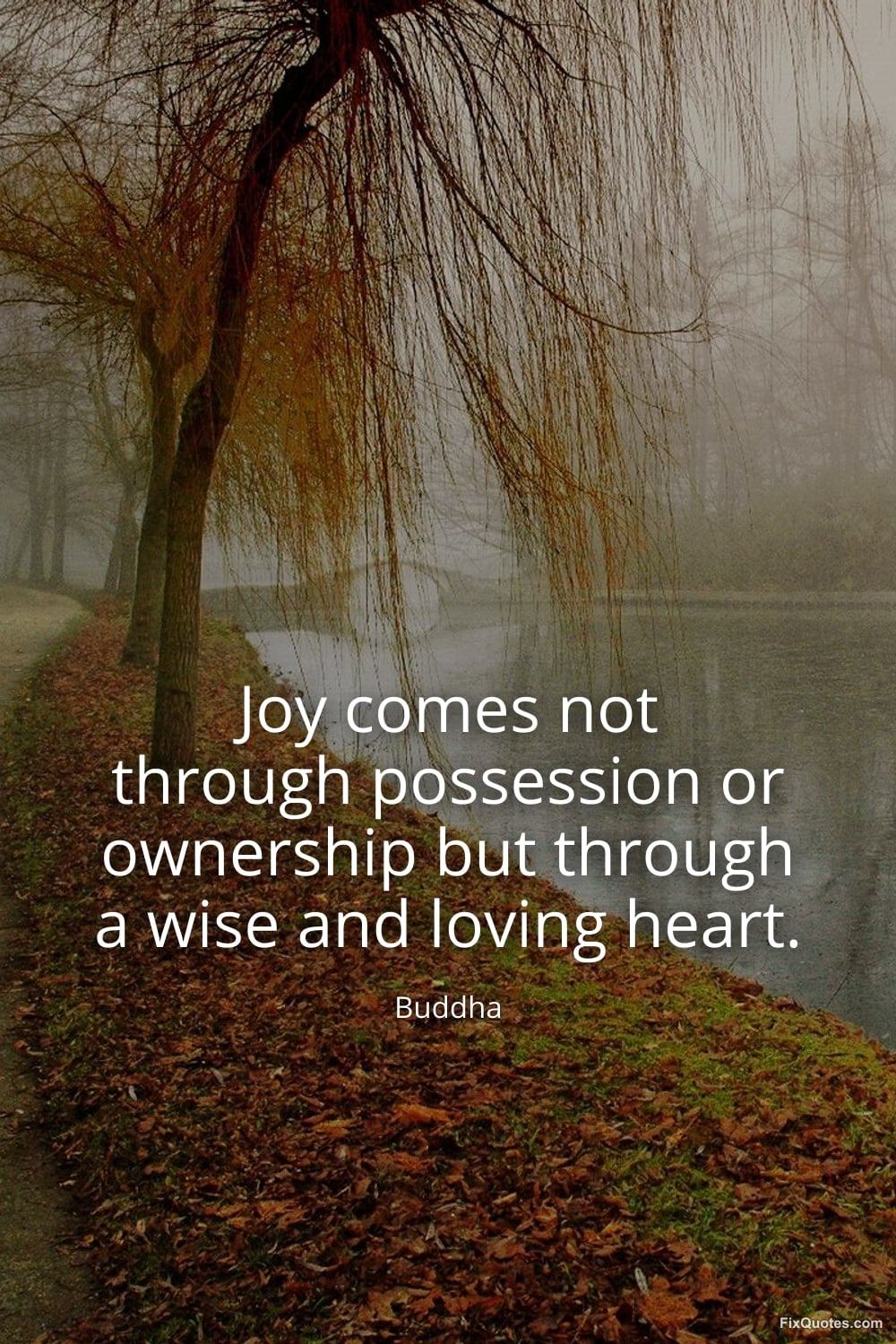 Buddha. (2026, March 10). Joy comes not through possession or ownership but through a wise and loving heart. FixQuotes. https://fixquotes.com/quotes/joy-comes-not-through-possession-or-ownership-but-185893/