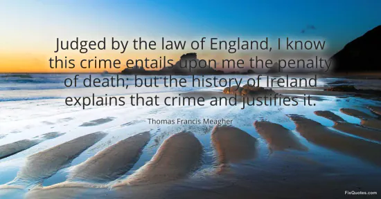 Meagher, Thomas Francis. (2026, January 16). Judged by the law of England, I know this crime entails upon me the penalty of death; but the history of Ireland explains that crime and justifies it. FixQuotes. https://fixquotes.com/quotes/judged-by-the-law-of-england-i-know-this-crime-117120/