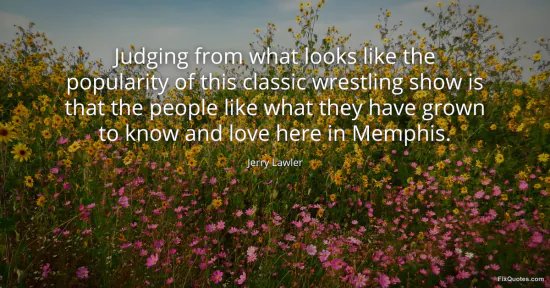 Lawler, Jerry. "Judging from what looks like the popularity of this classic wrestling show is that the people like what they have grown to know and love here in Memphis." FixQuotes. January 18, 2026. https://fixquotes.com/quotes/judging-from-what-looks-like-the-popularity-of-19161/.